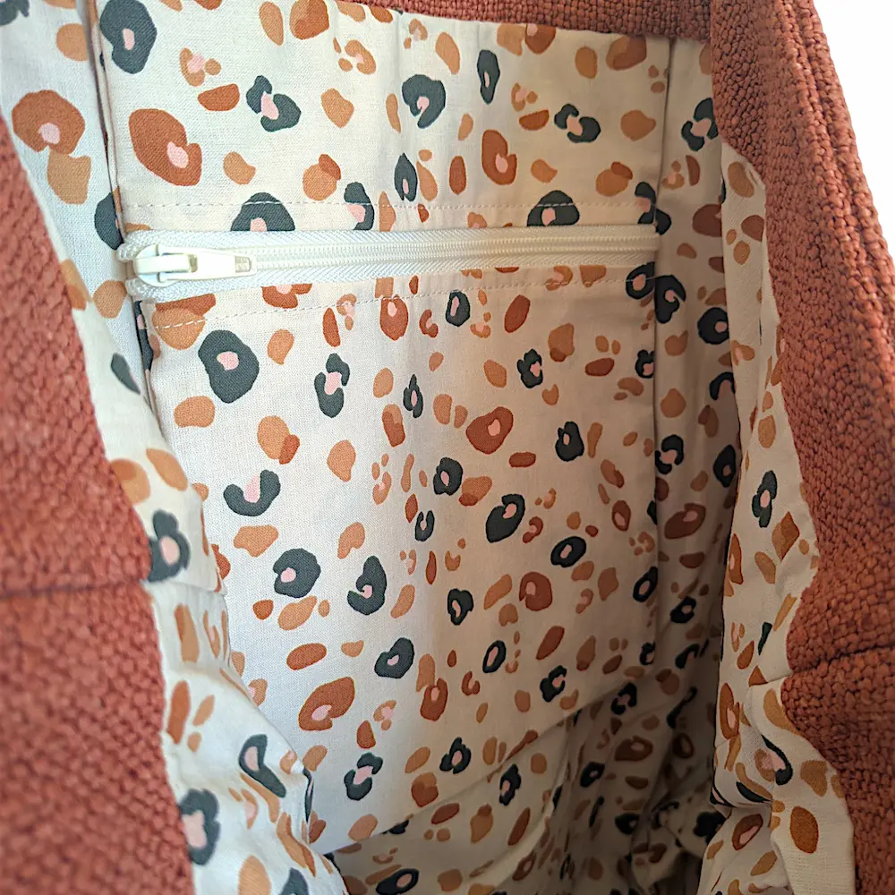 Sac Cabas aux dimensions généreuses pour vous suivre au marché, au boulot, à la plage ou encore avec bébé. Agrémentée d'une poche intérieure zippée. Ce sac est un véritable multi-fonction, il peut tout faire mais toujours avec élégance !