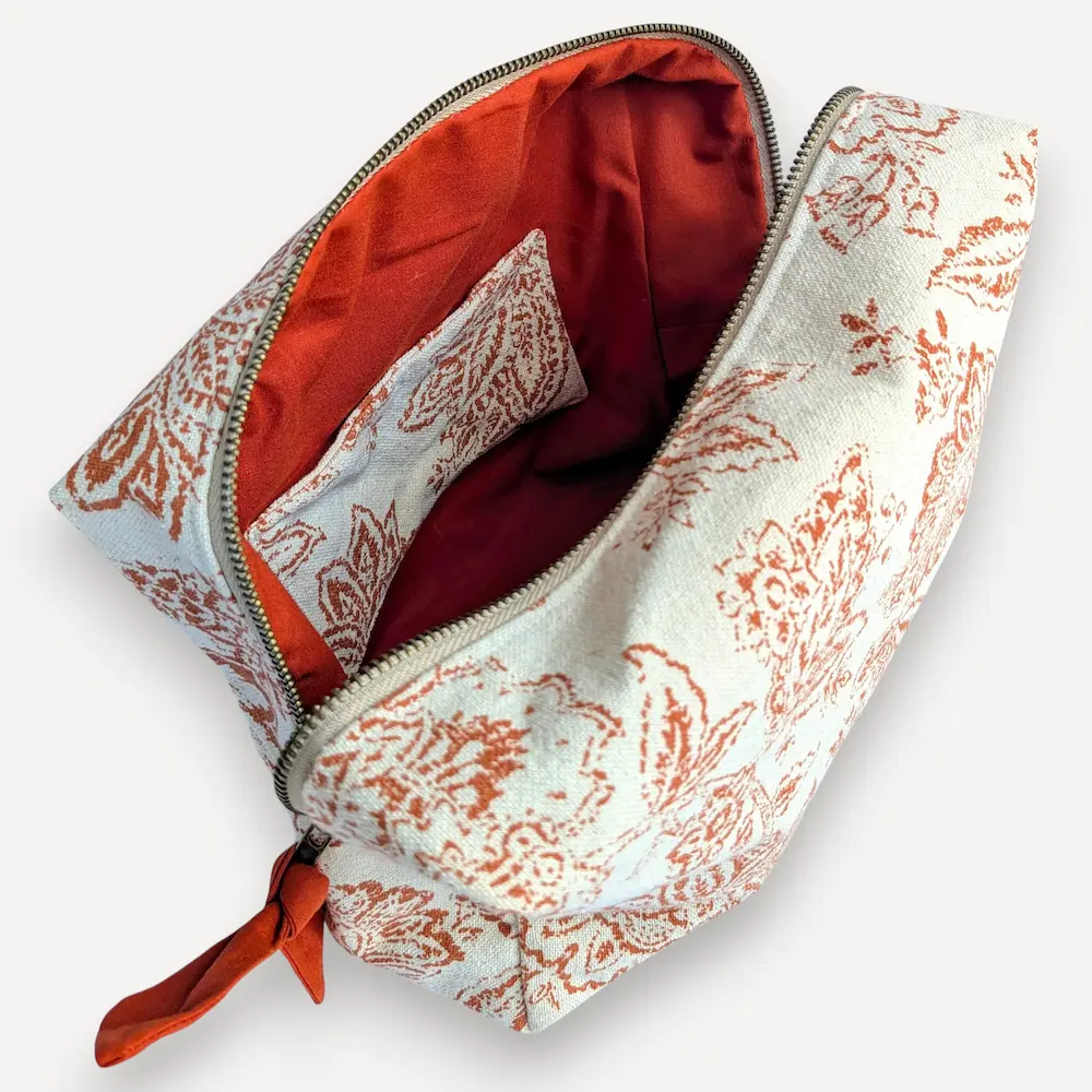 Trousse de toilette style Vanity. Sa largeur d'ouverture vous permet de retrouver vos produits en un clin d'œil. Petit poche intérieure pour glisser vos bijoux ou rouges à lèvres !